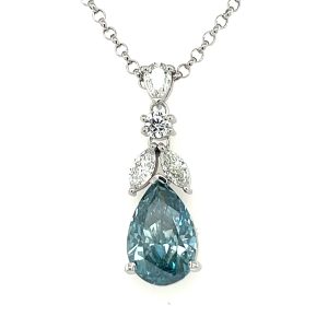 18k white gold 51 diamonds .61 carat T.W Ctr. 1.11 Carat blue diamond VS2 clarity