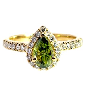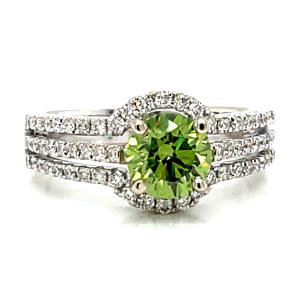 18k Yellow Gold 30 Diamonds 0.68 carats Center: Green Diamond weighing 1.33 carats Style: JR802YGD