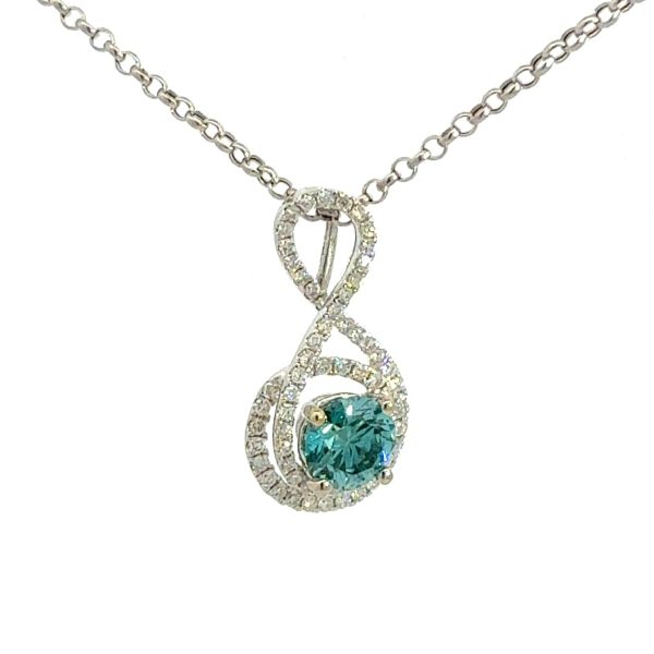 Style: JN908GD Green Diamond Pendant 18K White Gold 40 Diamonds 1.20 Carats Center: Green Diamond 1.47 Carat
