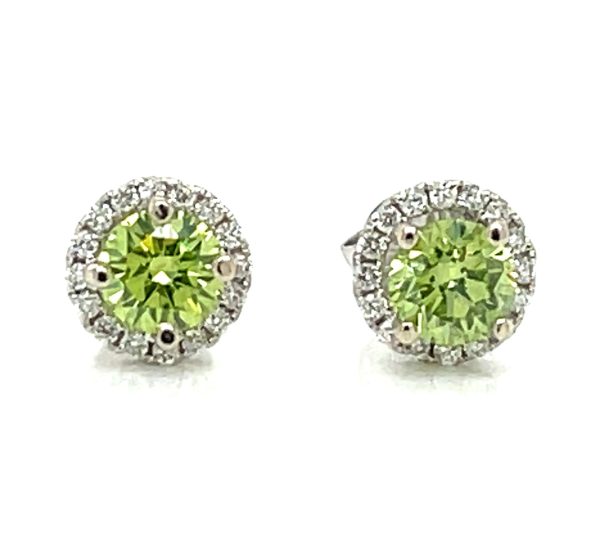 18k White Gold Setting: 16 Diamonds 0.78 carats Centers: 2 Green Diamonds 0.93 carats Style: STE2048GD