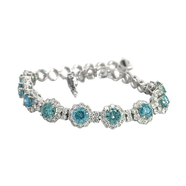 18k white gold 486 diamonds 2.00 carats T.W 27 blue diamond 7.08 carat TW