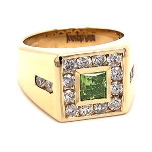 18k Yellow Gold 16 Diamonds 1.50 carats Center: Green Diamond 1.01 carats Style: PAR17576