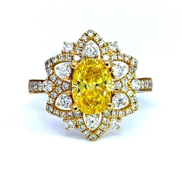 18KT GOLD 86 DIAMONDS .62CARAT TW. CENTER .88CARAT VVS1 CANARY DIAMOND