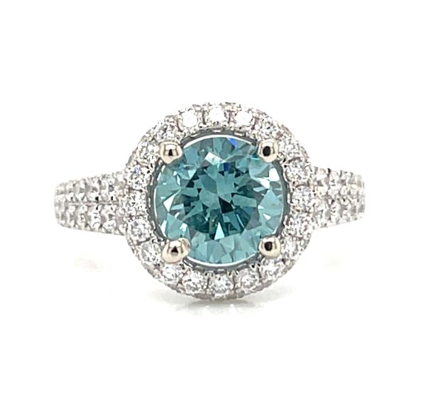 18k White Gold 54 Diamonds 1.00 carats Center: Blue 1.53 carats Style: STR319BD