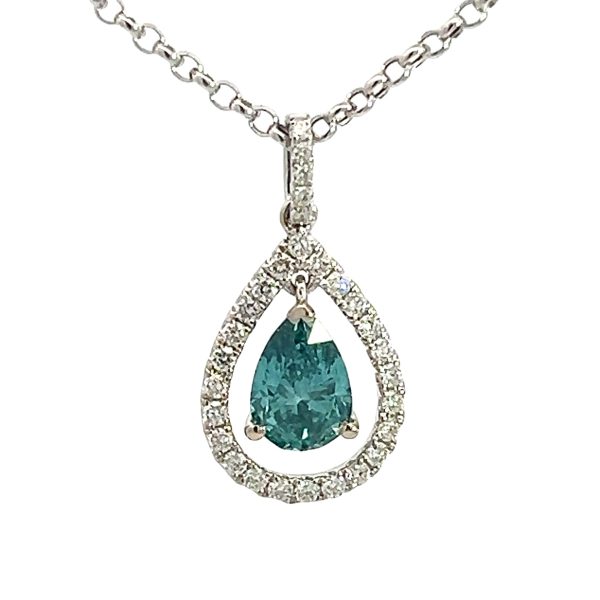 Style: GRNPRIRING Diamonds Pendant 18K White Gold 29 Diamonds 0.29 Carat Center: Green Diamond 1.00 Carat VS2