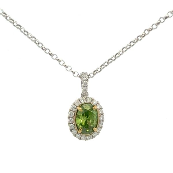 Style: JN163GD Green Diamond Pendant 18K White Gold 22 Diamonds 0.42 Carat Center Green Diamond 1.88 Carat VS1