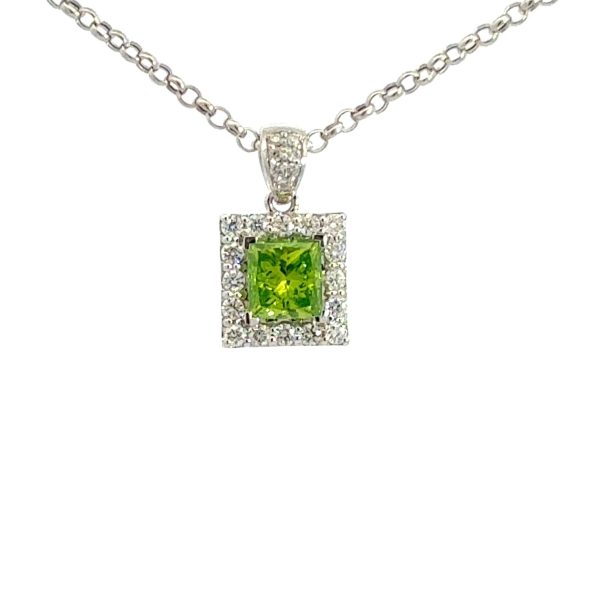 Style: STN1964GD Green Diamond Pendant 18K White Gold 29 Diamonds 0.32 Carat Center 2 Green Diamonds 0.90 Carat TW