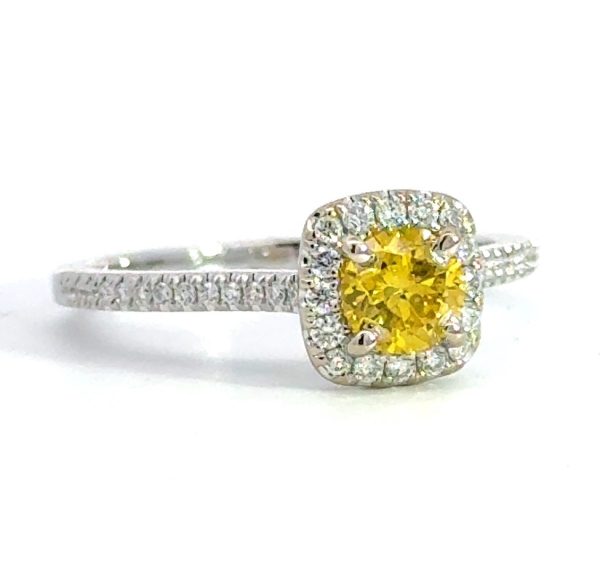 Setting: 18k Two-Toned Gold 14 Diamonds 0.50 carats Center: Yellow Diamond weighing 3.02 carats Style: GOR21