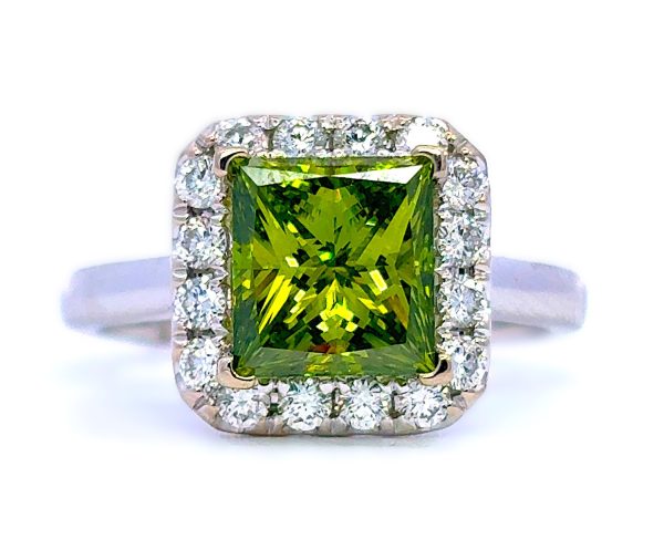 18k White Gold 75 Diamonds 0.30 carats Center: Green Diamond weighing 1.01 carats Style: JR1097GD