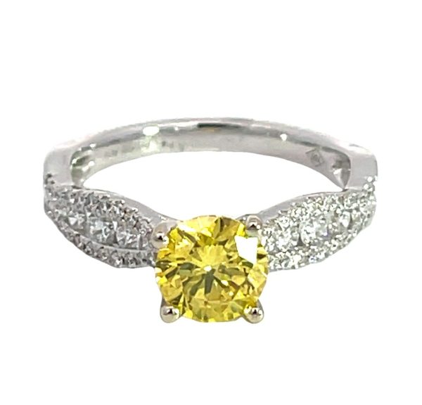 18k White Gold 75 Diamonds 0.30 carats Center: Yellow Diamond weighing 1.09 carats Style: JR1097YD