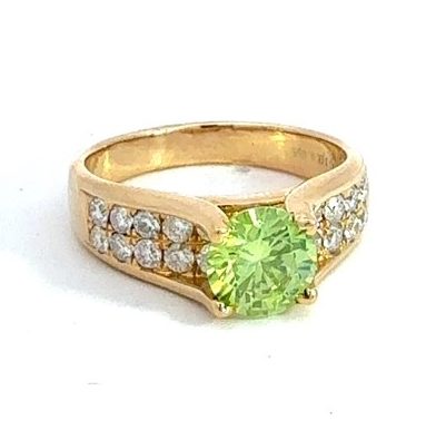 18k Yellow Gold 30 Diamonds 0.68 carats Center: Green Diamond weighing 1.33 carats Style: JR802YGD