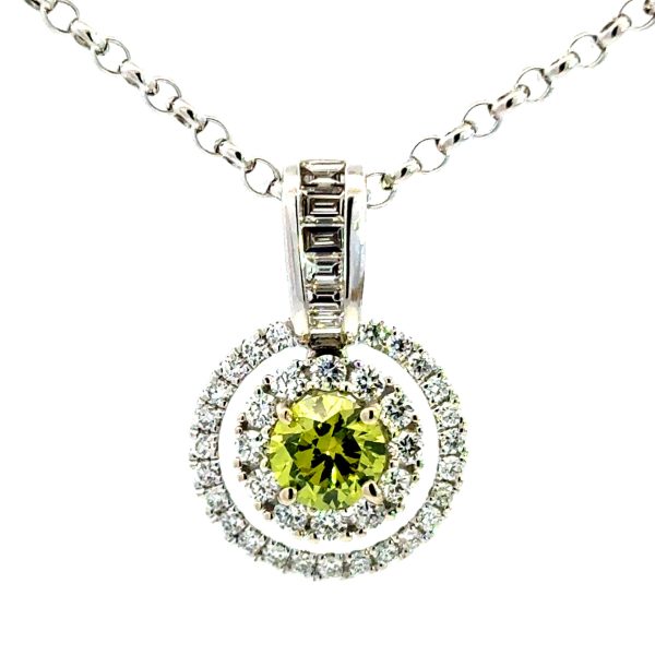 Style: STN1964GD Green Diamond Pendant 18K White Gold 29 Diamonds 0.32 Carat Center 2 Green Diamonds 0.90 Carat TW