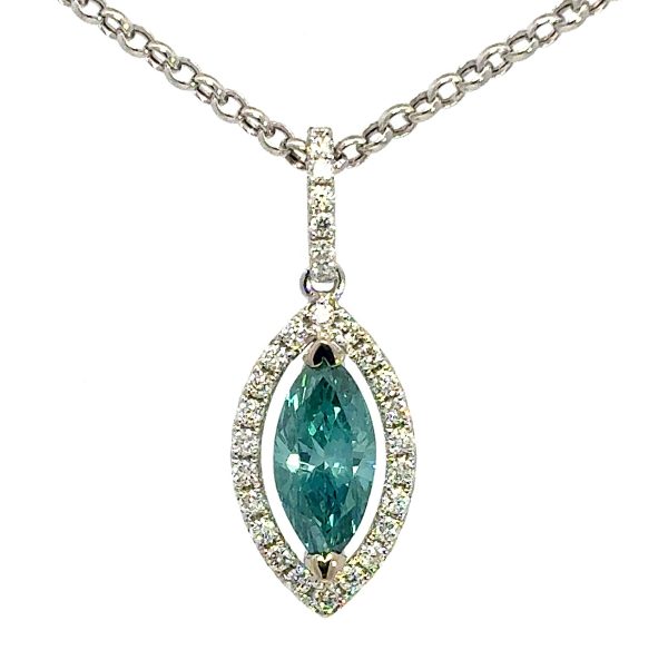 Style: STN1964 Blue Diamond Pendant 18K White Gold 29 Diamonds 0.32 Carat Center: 2 Blue Diamonds 0.80 Carat TW