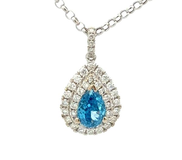 Style: STN1964 Blue Diamond Pendant 18K White Gold 29 Diamonds 0.32 Carat Center: 2 Blue Diamonds 0.80 Carat TW