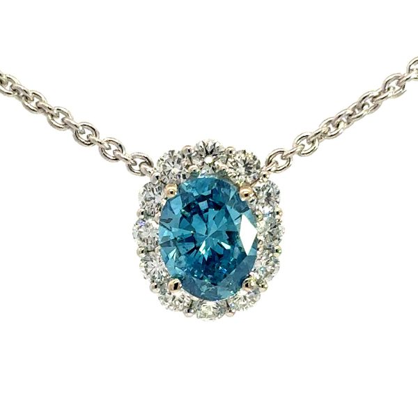 Style: JN306BD Blue Diamond Pendant 18K White Gold 72 Diamonds 0.56 Carat Center Blue Diamond 1.17 Carats VVS1 Clarity
