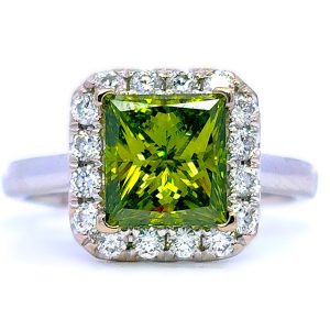 18k White Gold Setting: 16 Diamonds 0.50ct Center: 2.02ct Green Diamond Style: JR788GD