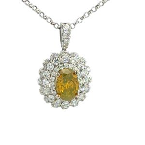 Style: JN908GD Green Diamond Pendant 18K White Gold 40 Diamonds 1.20 Carats Center: Green Diamond 1.47 Carat