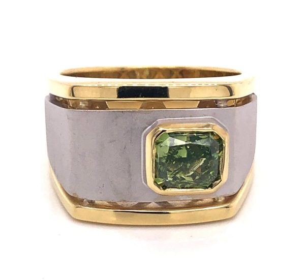 18k Yellow Gold 16 Diamonds 1.50 carats Center: Green Diamond 1.01 carats Style: PAR17576