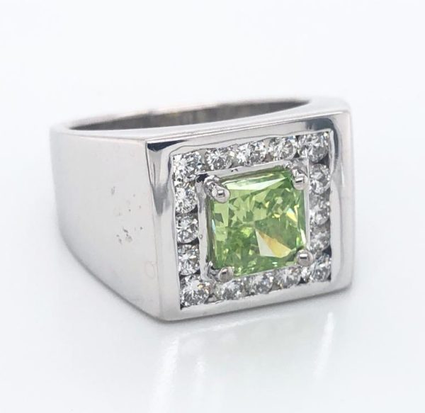 18k White Gold 64 Diamonds 1.25 carats Center: Green Diamond 1.26 carats Style: RR25059GD