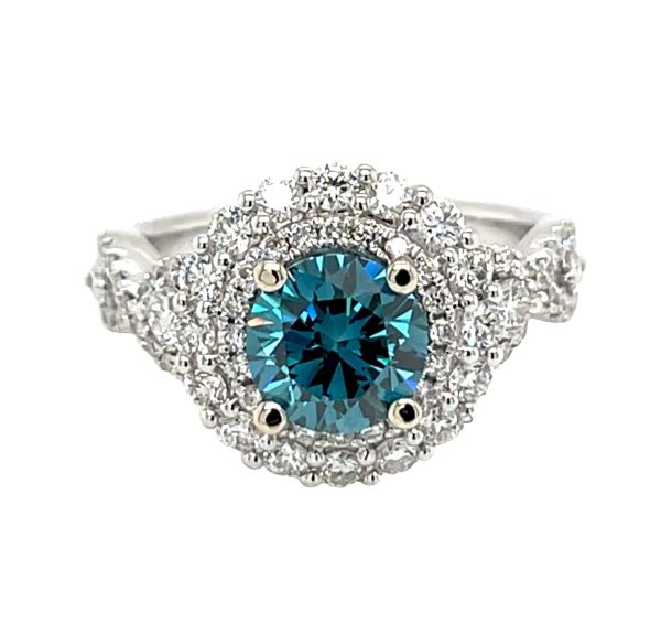 18k White Gold 75 Diamonds 0.30 carats Center: Blue Diamond weighing 1.01 carats Style: JR1097BD