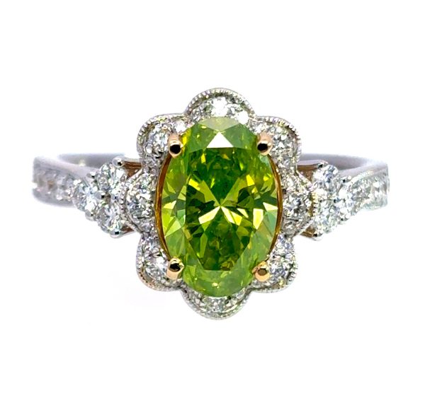 18K Gold 48 VVS Diamonds .78 Carat T.w. Center: 1.01 Carat Green Diamond SI Clarity- GAI Certified #D_92429745IL