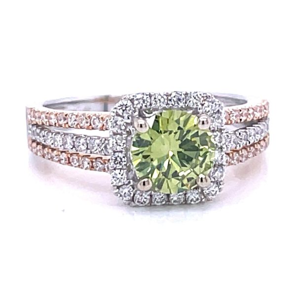 18k Yellow Gold 30 Diamonds 0.68 carats Center: Green Diamond weighing 1.33 carats Style: JR802YGD