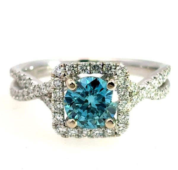 18k White Gold Setting: 32 Diamonds 0.60 carats Center: 0.97 carats Blue Diamond Style: JR1435BD